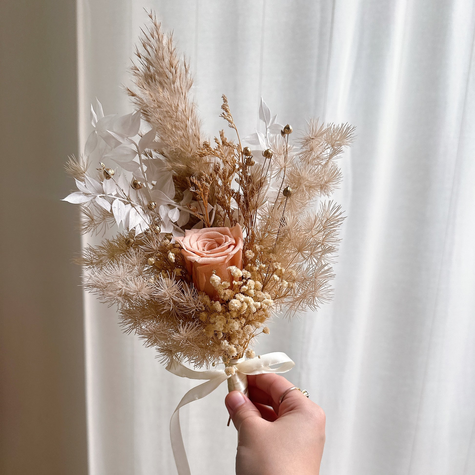 A serene peach preserved rose surrounded by soft dried blooms — a lasting symbol of love, peace, and cherished memories for your columbarium space.