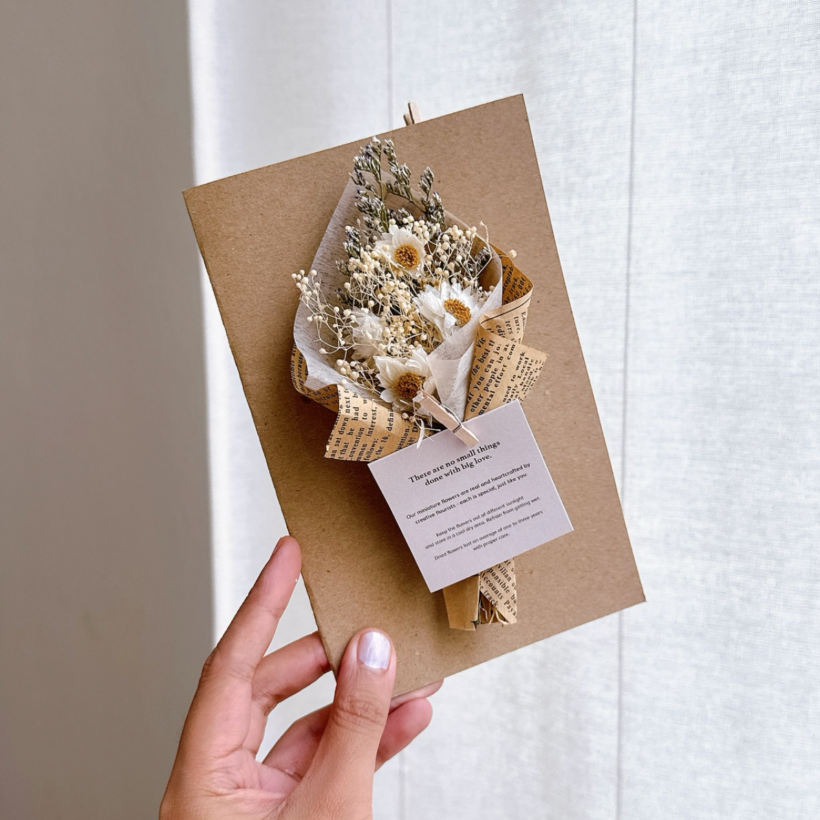 This package DOES NOT include a card/personal message. Additional P350 to purchase flower card: (1) mini bouquet, (1) personalized typewritten letter.