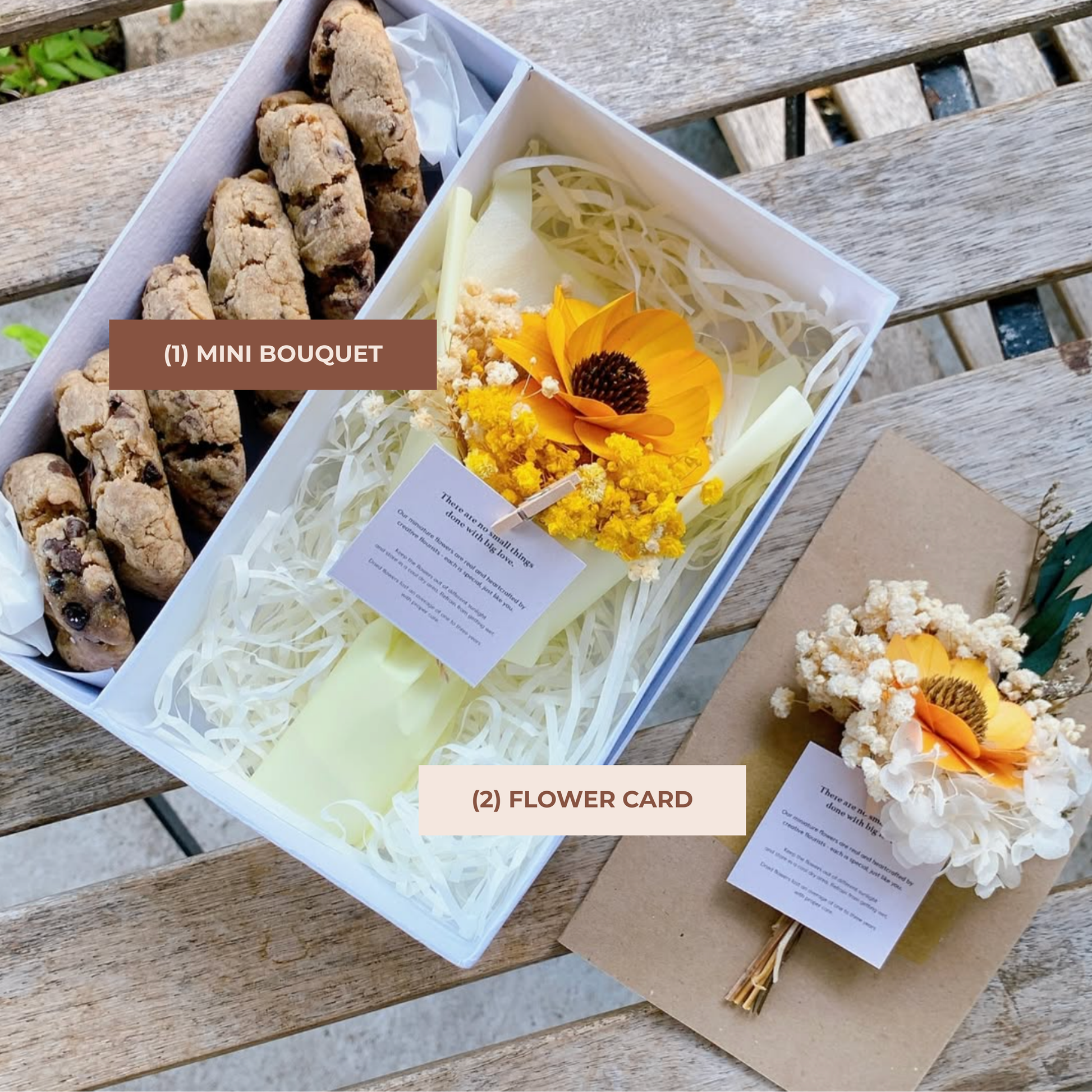 💐 (1) Flower card (mini bouquet attached to a personalized typewritten letter)