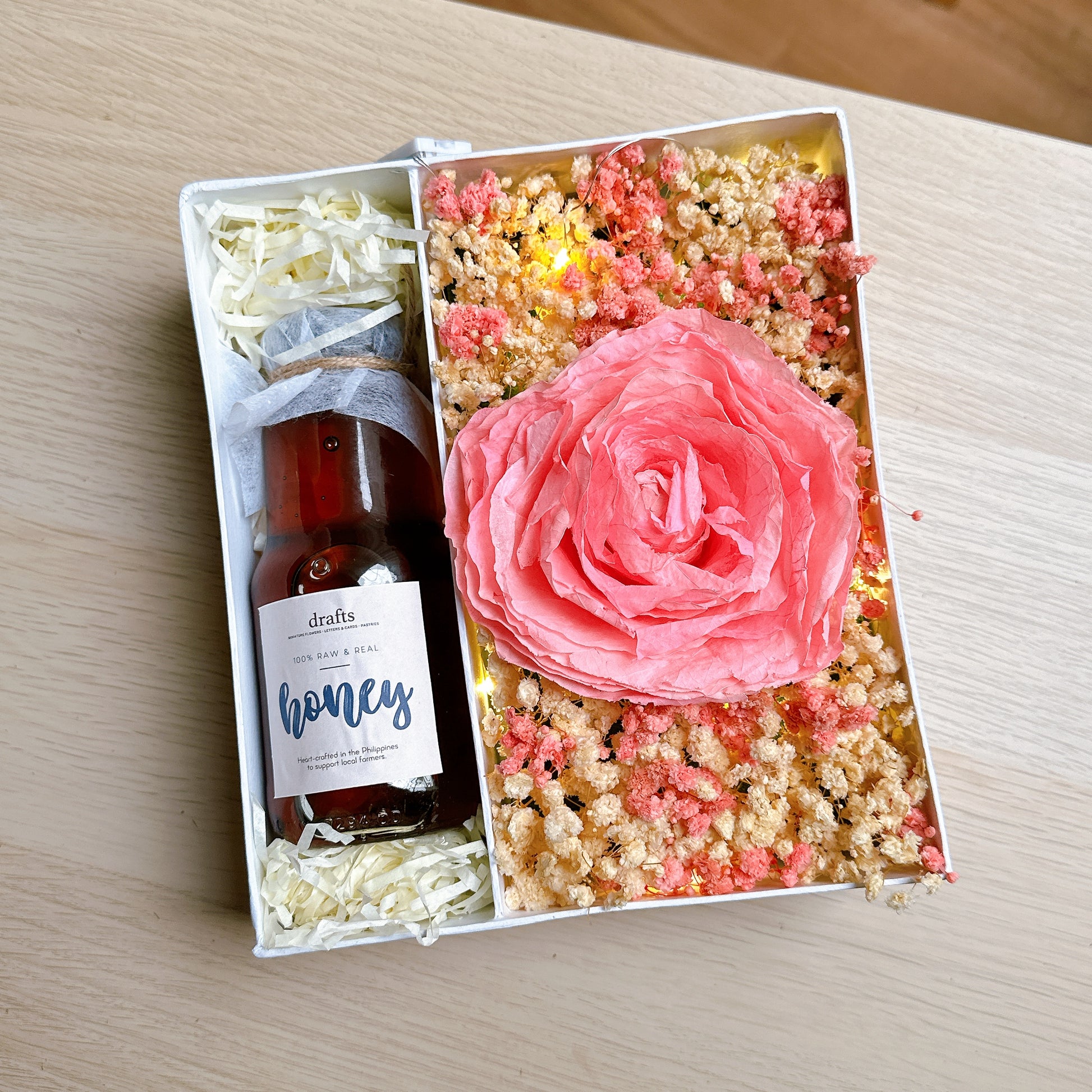 This package DOES NOT include a card/personal message. Additional P350 to purchase flower card: (1) mini bouquet, (1) personalized typewritten letter.